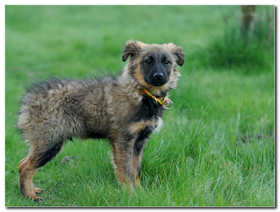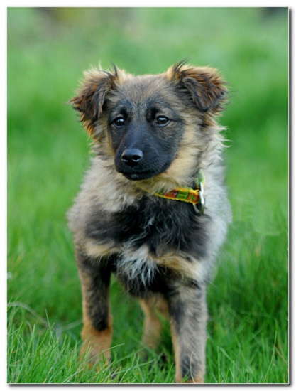 Kamelek ma ok. 4 mies., jest w trakcie wymiany zębów. Jest ok. 5 kg psiakiem, sięga poniżej kolana. Docelowo będzie pewnie ok. 15 kg średniaczkiem. Kamel ma króciuteńki ogonek, wygląda jak mała, puchata owieczka. Ma delikatne, puszyste futerko i ciemną maskę. Jest niesamowicie oryginalny. Maluch zachowuje się jak typowy szczeniak, ufny i kontaktowy w stosunku do człowieka. W sytuacji stresowej szuka wsparcia i od razu wspina się na kolana. Jest bardzo delikatny i subtelny. Jest małym rezolutnym psiakiem, bardzo szybko uczy się od większego kolegi, obserwuje go i naśladuje. Chodzi za nim krok w krok. Jest czujny, ze starszym kolegą dzielnie szczeka pod brama. Jest rezolutny i mądry.