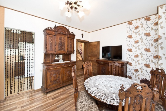Dolny poziom utrzymany jest w stylu retro, a górny w rustykalnej, jasnej tonacji. Mieszkanie położone jest na pierwszym i drugim piętrze, liczy ok. 65 m kwadratowych. Na dolnym poziomie znajdują się 2 pokoje 2-osobowe, kuchnia (wejście z większego pokoju), łazienka i przedpokój.W mniejszym pokoju mieści się wygodne łoże małżeńskie, a w salonie dwuosobowy, rozkładany narożnik.