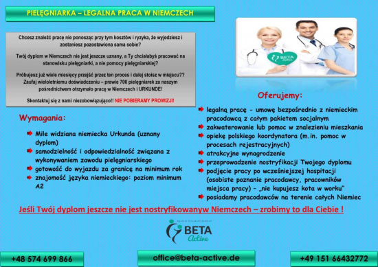 Twój dyplom w Niemczech nie jest jeszcze uznany, a Ty chciałabyś pracować na stanowisku pielęgniarki, a nie pomocy pielęgniarskiej?