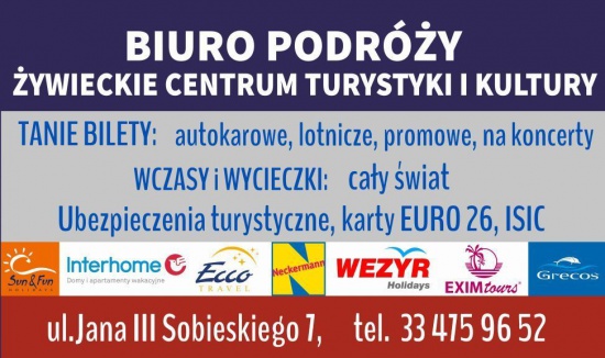 Na 250 metrach kwadratowych powierzchni w centrum Żywca przy ul. Jana III Sobieskiego 7 (II piętro) znajduje się multiagencja turystyczna i ubezpieczeniowa w której można zakupić wycieczki na cały świat (wszystkie kierunki wakacyjne ponad 400 biur podróży na całym świecie: bliskie kraje i egzotyczne zakątki świata) znanych i renomowanych touroperatorów m.in: