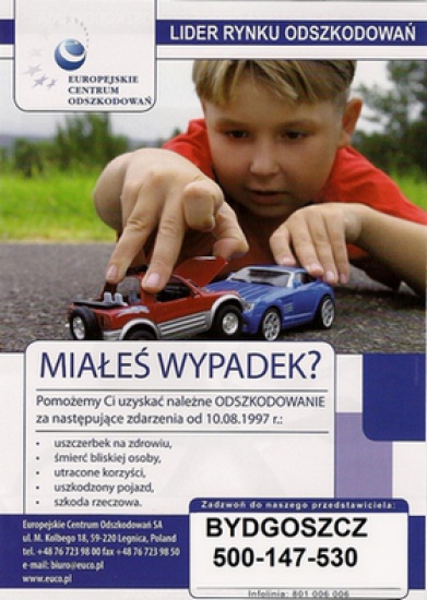 Miałeś wypadek?Pomogę uzyskać należne odszkodowanie.Bez opłat wstępnych.Z własnej kieszeni nie płacisz ani grosza!!! Uzyskujemy odszkodowania z polisy OC po wypadkach: