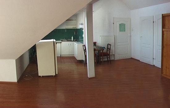 Bardzo przyjemne, słoneczne (4 okna dachowe) i ciche mieszkanie ze skosami na trzeciej kondygnacji budynku (8 mieszkań). 66m2 powierzchni, 48 m2 pełnowymiarowej (skosy nie zabudowane). Pokój dzienny z wnęką kuchenną i balkonem wychodzi na południe. Wnęka z kuchnią gazową, obudową zlewozmywaka, blatem z szafkami.