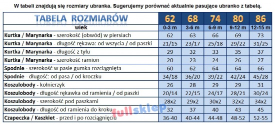 Rozmiary ubranek na chrzciny jakie posiadamy, to: (62), (68), (74), (80), (86).