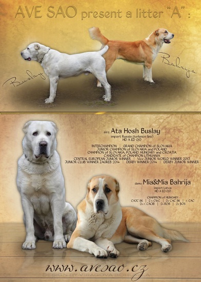 Dog kennel named AVE SAO offers for sale amazing and healthy puppies with pedigree (D.O.B. 21.2.2015) high quality mating (parents: MiaMia Bahrija X Ata Hosh Buslay).