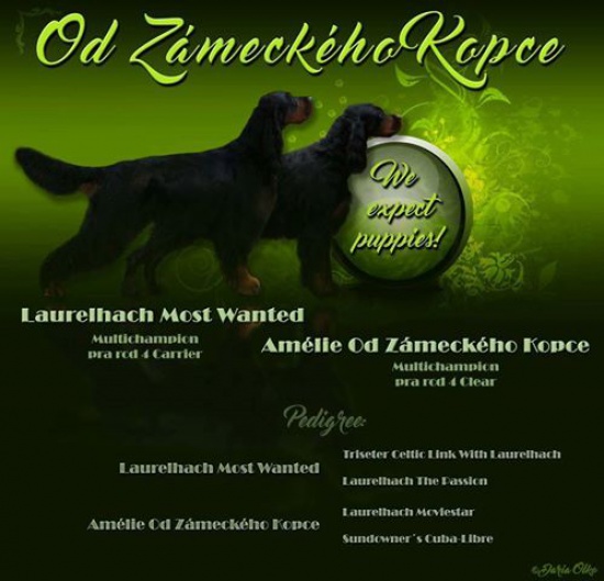 Father: JCHPL, JCHDE, CHPL, CHRO, CHDE-Laurelhach Most Wanted, full-teeth, full-teeth, scissor bite, hunting test 72/100, PRA: carrier, HD A/A, Winner of interclass at WDS in Budapest 2013, more at http://gordon-setters.weebly.com/laurelhach-most-wanted.html