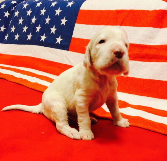 Dog kennel Royal Setter offers for sale last available male puppy of English Setter with pedigree, in color orange. This is an exceptional mating of multiple champions that will not be repeated.