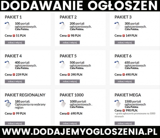 Do wyboru mają Państwo klika pakietów : http://www.dodajemyogloszenia.pl/pakiety_ogloszeniowe.php