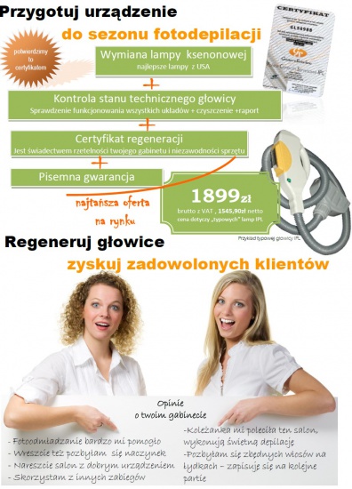 Wielokrotnie wysyłasz swoje urzadzenie kosmetyczne na naprawy, które ciągle kończą sie niepowodzeniami? Nie jesteś zadowolony z jakości obsługi swojego dotychczasowego serwisu? Regeneracja głowicy z wymianą lampy na nową nie daje obiecywanych przez "serwisanta" efektów?