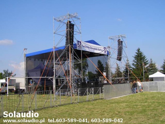 Wynajem: scen, nagłosnienia, oświetlenia, barierek ochronnych, najazdów kablowych, rusztowań scenicznych wraz z montażem na imprezy plenerowe tel. 603589041 www.solaudio.com